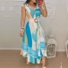 Sexy V-neck Sleeveless High Waist Irregular Hem Printed Dress