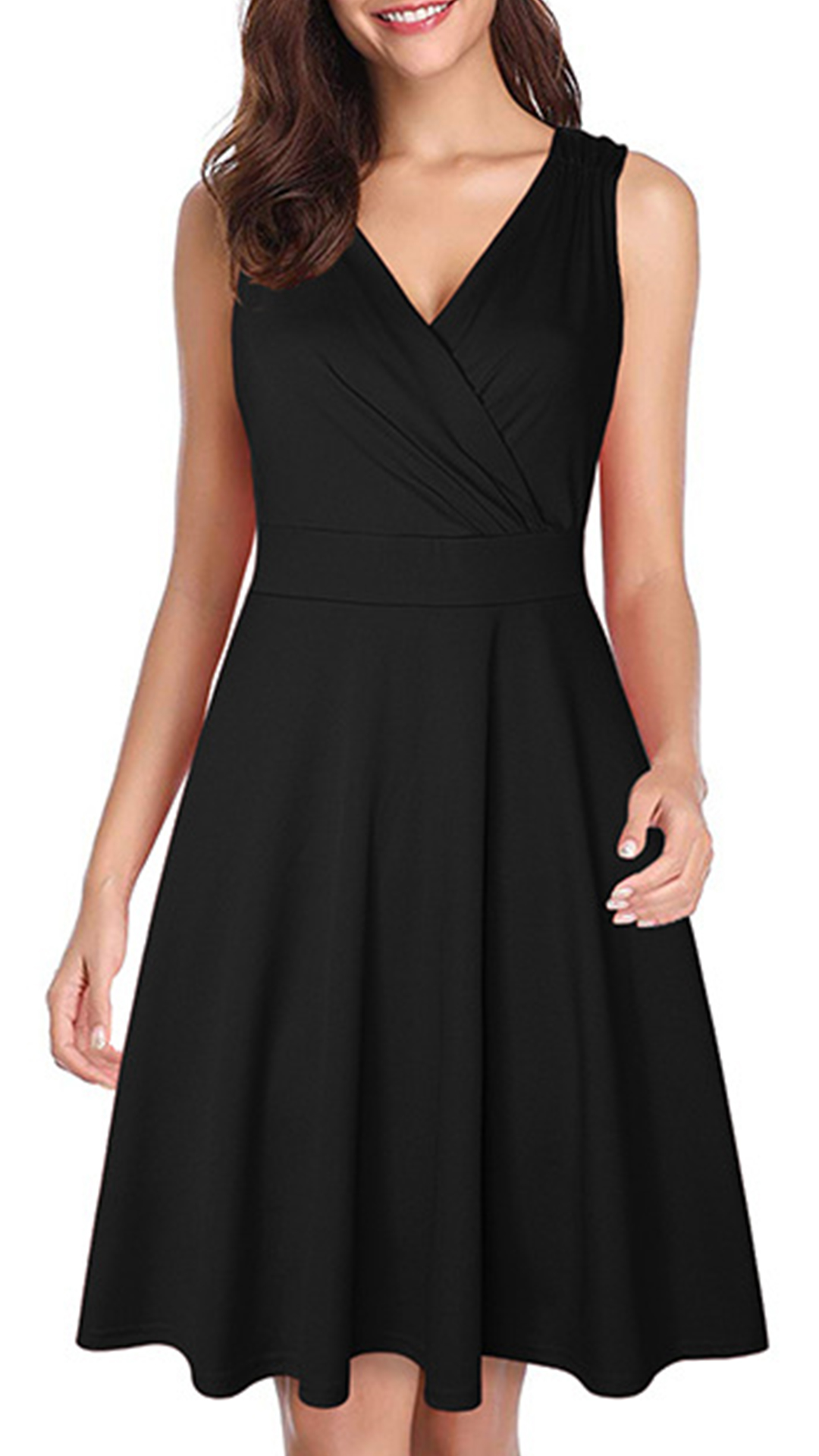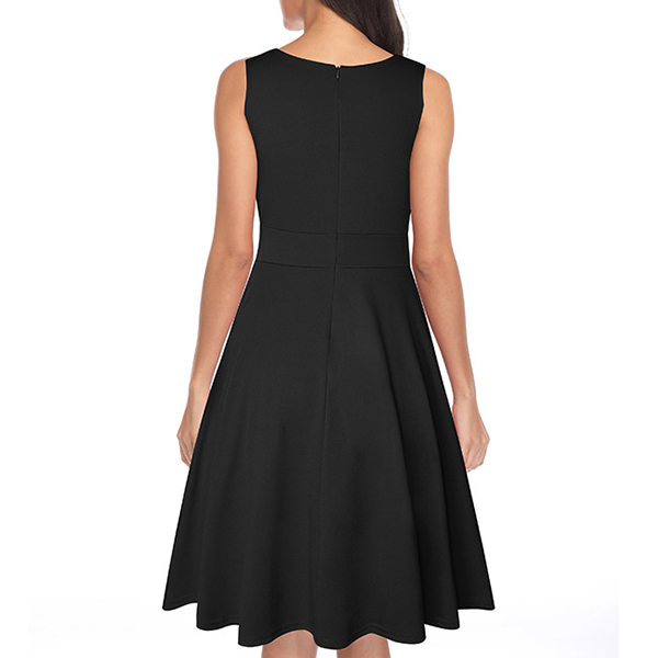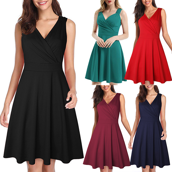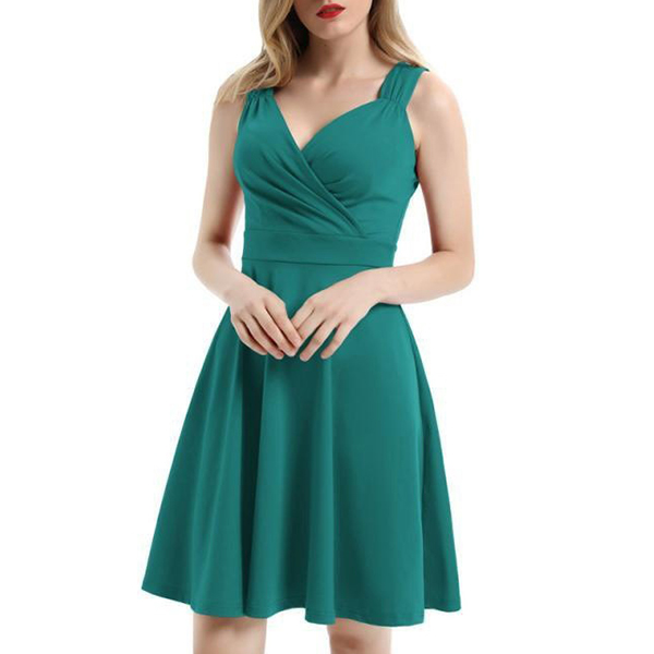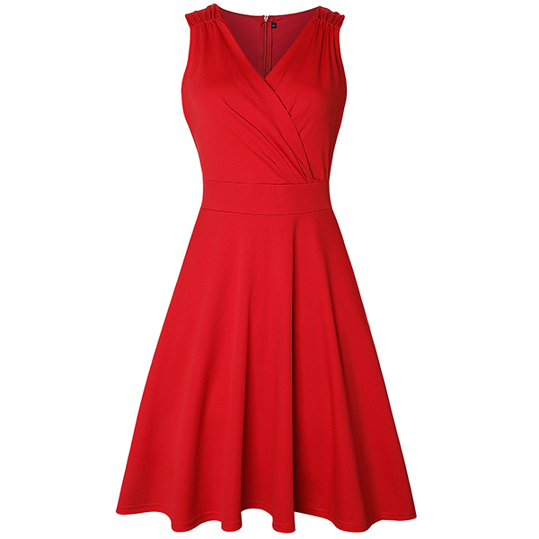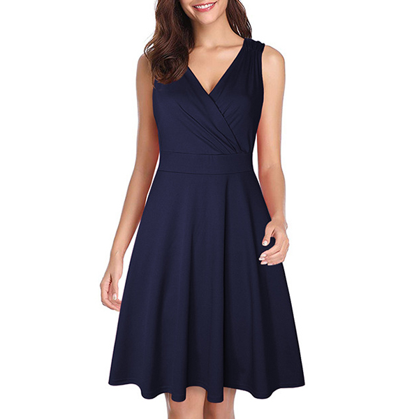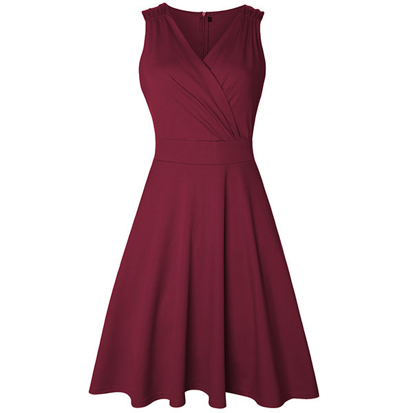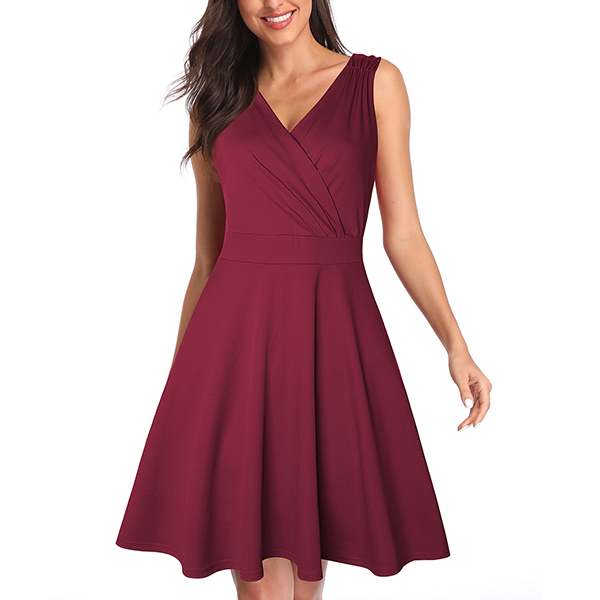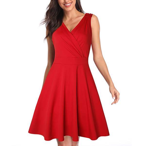 You need a dress that combines to sassy and flirty vibes to take you to different occasions,and this piece is the perfect example. Solid color style,finished with sleeveless,v-neck and high waist design,this dress not only can showcase your slender figure,but also can exude your feminine side. So why not take interest in it?
