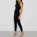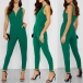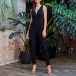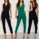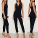 Sexy V-neck Sleeveless High Waist Solid Color Slim Fit Jumpsuit