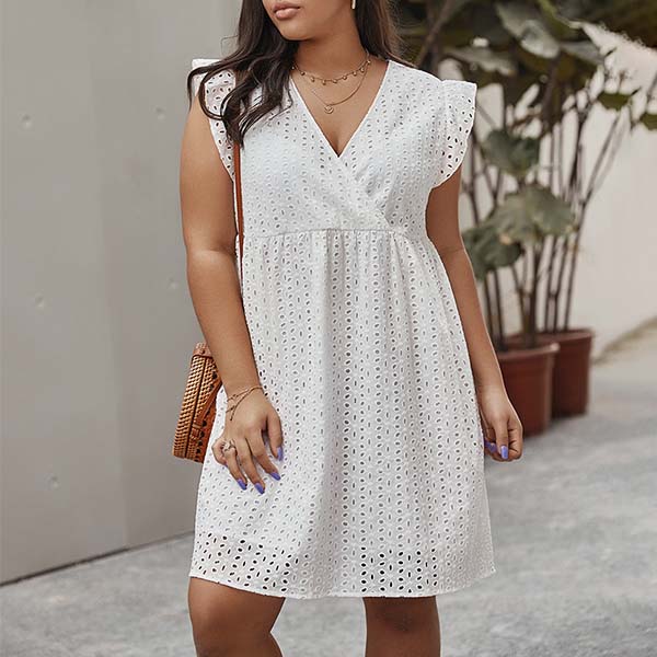 Take an interest with this dress to give your wardrobe a seasonal update. The v-neck and hollow out details make this piece look so sexy and flirty. Meanwhile,its soft and breathable fabric can give you a comfortable day. Just slip into this dress to express your style and charm.