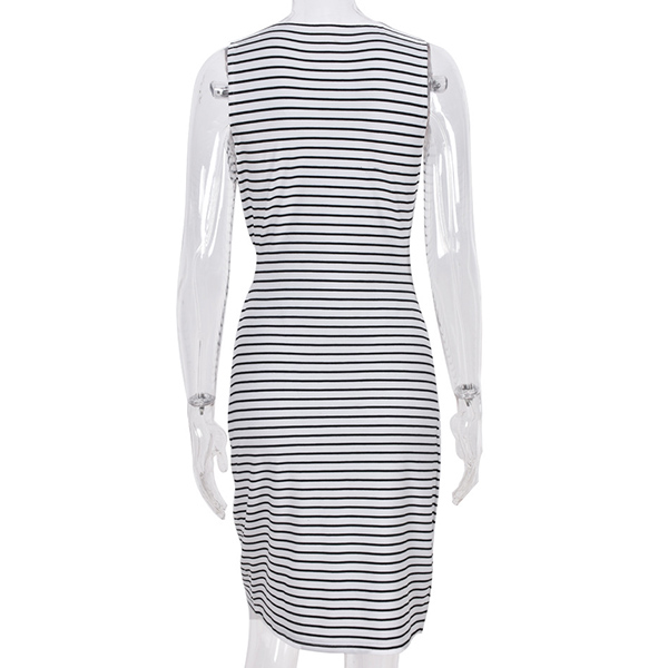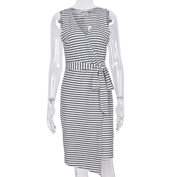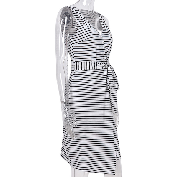 Sexy V-neck Sleeveless Lace-up High Waist Stripe Dress