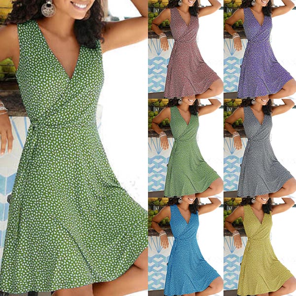 Greet the summer days with this beautiful dress. Its vibrant floral print details make this piece look more eye-catching. Finished with sleeveless and v-neck design,this dress can enhance your feminine appeal as well as express your beauty.