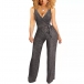 Sexy V-neck Sleeveless Self-tie Bling-bling Ribber Jumpsuit