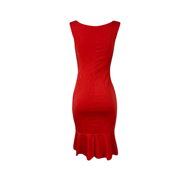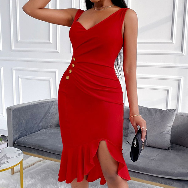 Sexy V-neck Sleeveless Slit Fishtail Hem Solid Color Slim Fit Dress
