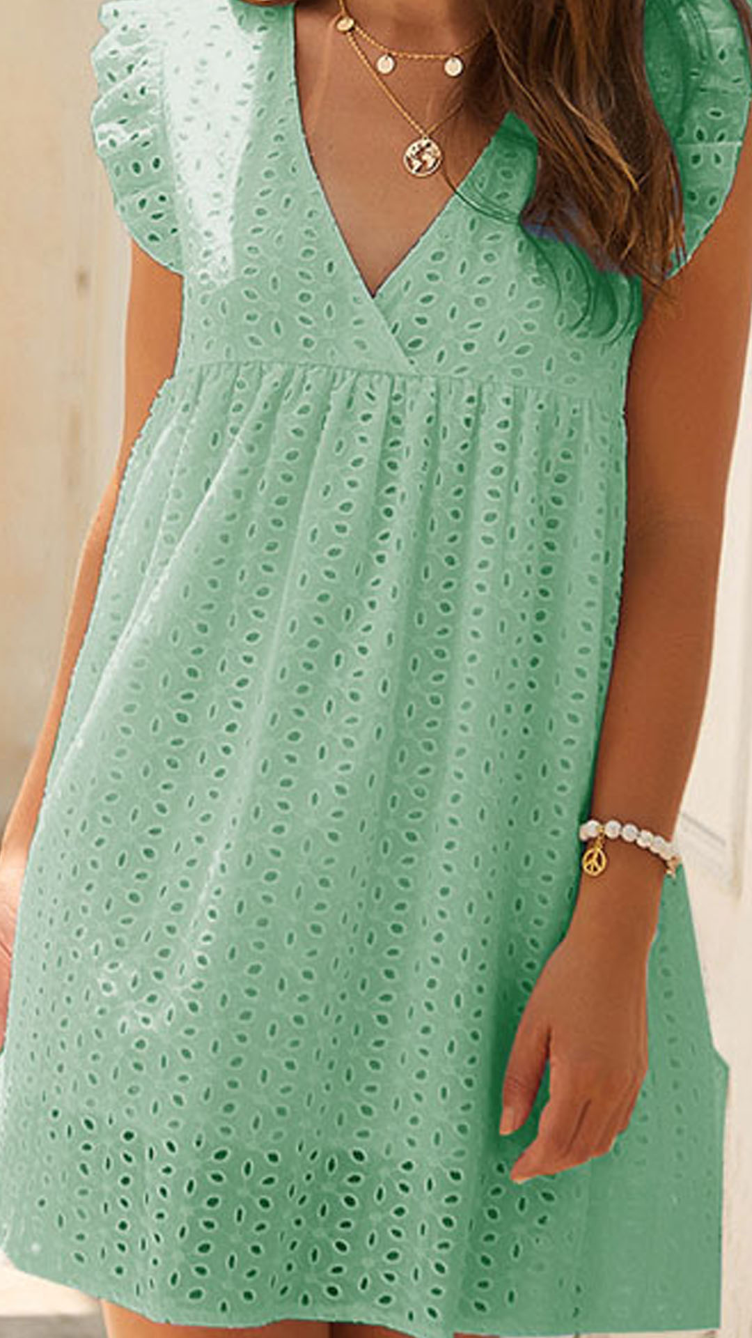 Style and sophistication come together so perfectly in this lace dress! Solid color tone design makes it look simple yet generous. Finished with sleeveless,v-neck and a loose silhouette,this piece not only can exude your charming feminine appeal,but also can offer you a comfortable day.