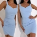 You can look sexy and alluring when you dress yourself up with this two-piece set. Solid color style,including a v-neck sling crop top and a high waist irregular hem skirt,this two-piece set not only can showcase your slender figure,but also can exude your charming feminine appeal. So for your summer events,you can just have a try this two-piece set to express your beauty and charm.