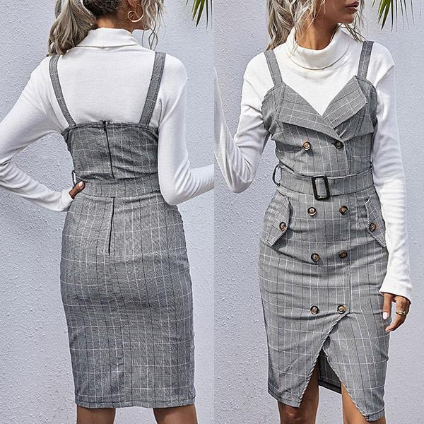 Wanna your simple and dull wardrobe have an update? Then you can just have a look at this dress. Sling style,with backless,v-neck,slit hem and double-breasted design,these details make this piece full of sassy and flirty vibes. In these autumn days,we suggest you matching with your long sleeve t-shirts,shirts or sweaters to start your wonderful day.