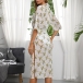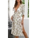 Sexy V-neck Slit Hem Half Sleeve Printed Beach Dress