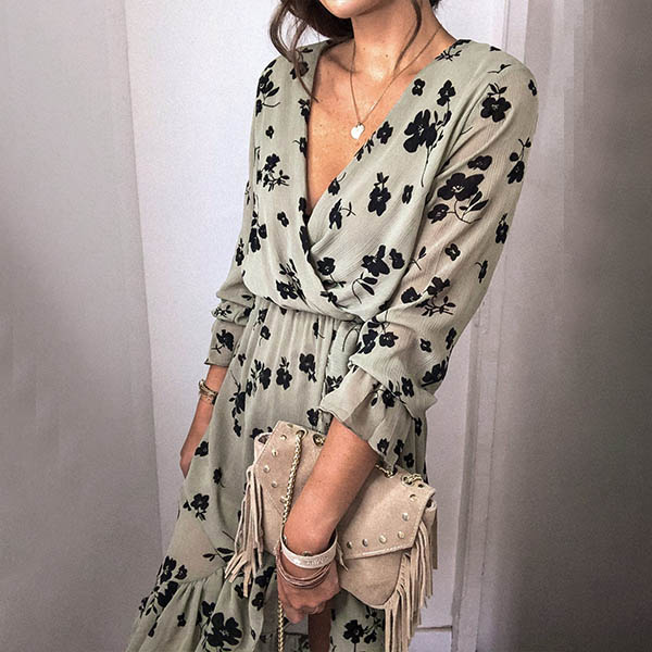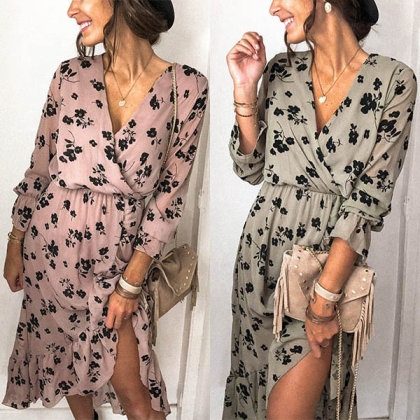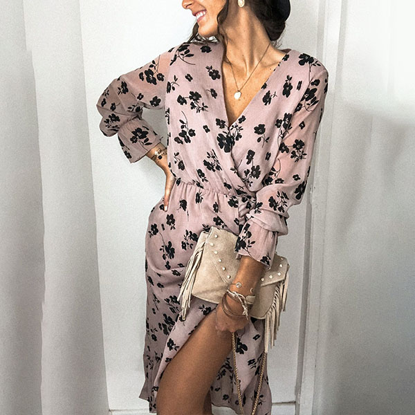 If you are still worrying about what to wear for your dinner dates and weekend out,then you can just make your eyes focused on this dress. Features chic printed details,the v-neck and slit hem design can make you look sexier. Dress it up with your sexy heels,you can look beautiful enough!