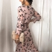 Sexy V-neck Slit Hem Long Sleeve Printed Dress
