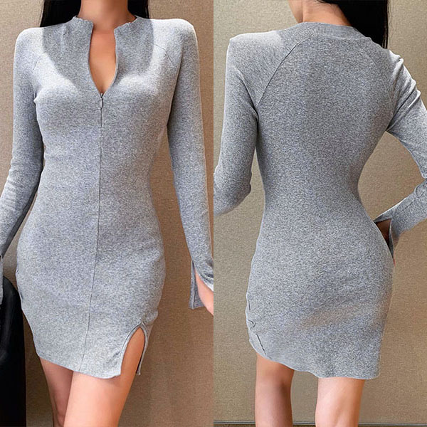When you don't know what to wear for your dinner dates,then you can just have a try this dress. Solid color style,the fit silhouette design can showcase your slender figure,while the v-neck and slit hem design will lend you a dash of sexy and flirty vibes. You can just dress it up with your sexy heels for a stunning look!