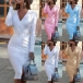 Sexy V-neck Slit Hem Long Sleeve Solid Color Slim Fit Knit Dress