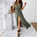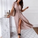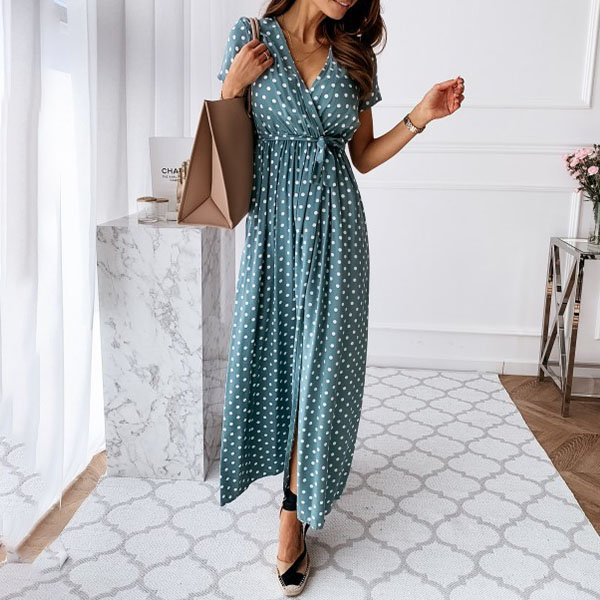 When you are out and about with this dress,you can easily be a pleasant sight to draw more attention. The dots printed details make this piece look playful and eye-catching,while the v-neck and slit hem design will make you look sexier. You can just slip into this dress to express your beauty and femininity!