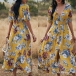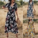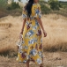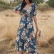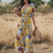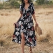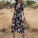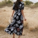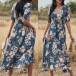 Sexy V-neck Slit Hem Short Sleeve High Waist Printed Maxi Dress