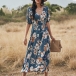 Looking for that perfect little stunner to shine in your summer days, but don't want to exert too much energy? Obviously,this dress will do just that with zero effort needed on your part. Its chic and eye-catching printed details can help you catch more eyes. Finished with short sleeve,v-neck,slit hem and high waist design,this dress can showcase your slender figure as well as exude your charming femininity.