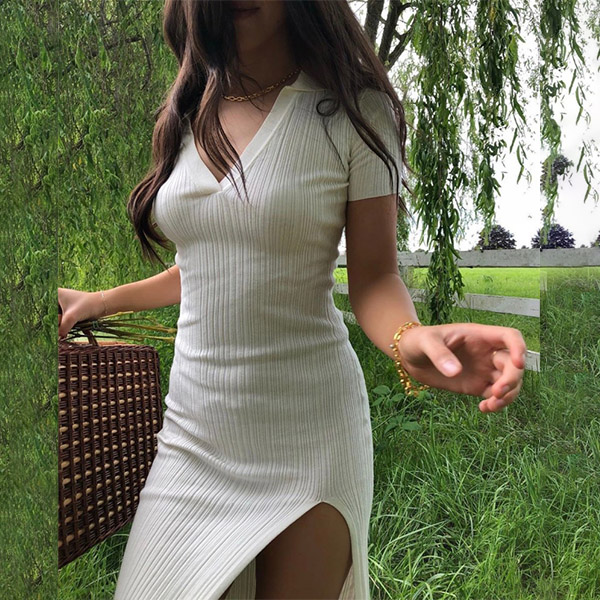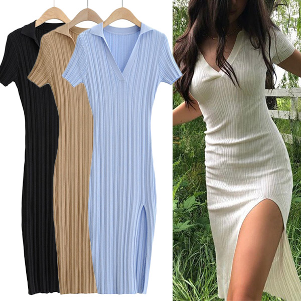 Hey,girls,you can trust in this piece to update your style and boost your entire charm with the help of this knit dress. Solid color style,the v-neck and slit hem design will lend you some sexy and flirty vibes,while the fit silhouette design will portray your slender figure. You can just slip into this piece to express your beauty and charm!