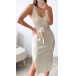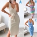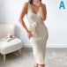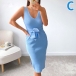 Sexy V-neck Slit Hem Sleeveless Tie-belt Slim Fit Knit Dress