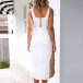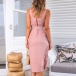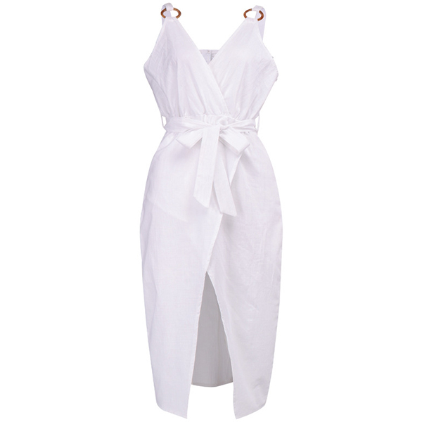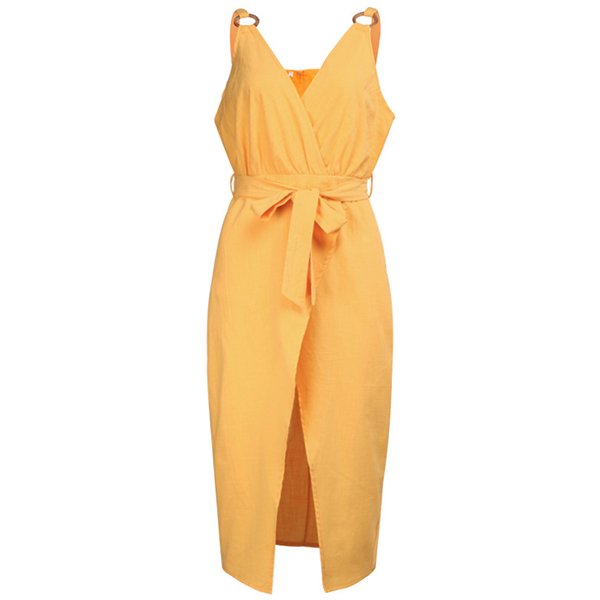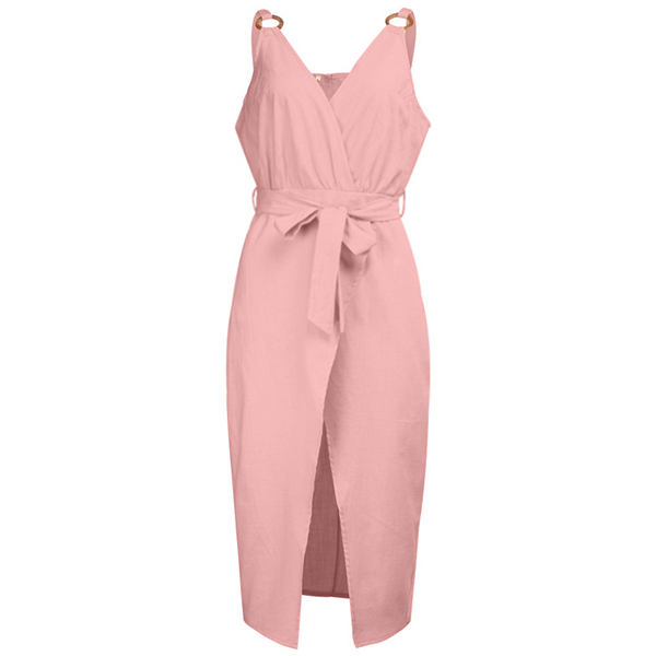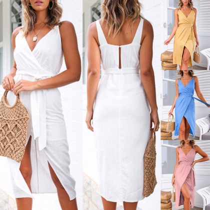 Sexy V-neck Slit Hem Solid Color Sling Dress