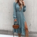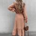 Sexy V-neck Slit Ruffle Hem Long Sleeve Dots Printed Dress