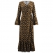 You don't need to wonder why all eyes are on you when you don this dress! The leopard printed details make it look so eye-catching,while the v-neck,slit ruffle hem and trumpet sleeve design will offer you a more alluring look. Dress it up with your sexy heels to arouse a splash.