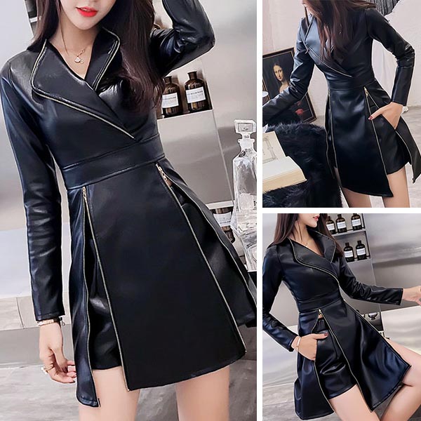 I promise this PU leather two-piece set can easily boost your entire charm. Including a long sleeve v-neck dress and a shorts,the zipper hem design will make it look more distinctive and attractive. For your weekend dating with your friends,you can choose this two-piece set to arouse their envious eyes.