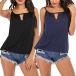 For the sun-soaked summer days,this cozy,sexy top can be your perfect choice. Solid color style,the sling and v-neck design can lend you some flirty vibes. Meanwhile,its soft,breathable fabric and loose silhouette design can ensure you a cool and comfortable day. Try to match with your shorts to enjoy your summer days.
