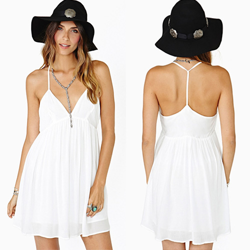 This dress features sling style,with t-shape backless and deep v-neck design,sexy and charming.