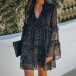 Sexy V-neck Trumpet Sleeve Leopard Printed Dress
