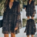 When you are walking on the street with this dress,you can easily be a pleasant sight to draw more attention. The leopard printed details make it look so eye-catching,while the v-neck and trumpet sleeve design will further enhance its entire charm. So why not slip into this dress to express yourself?