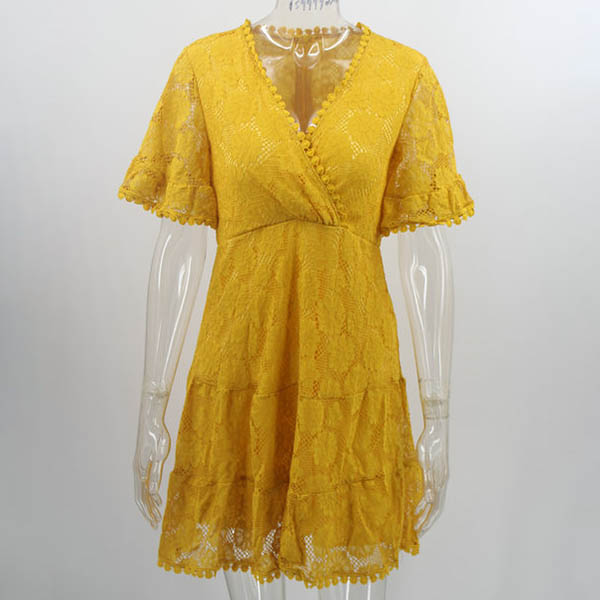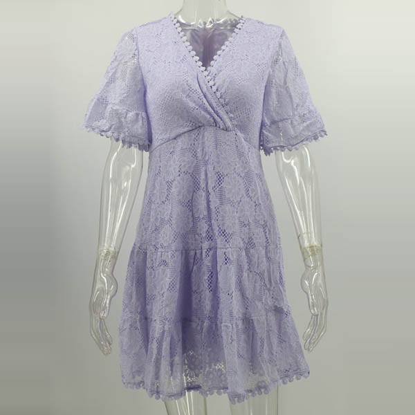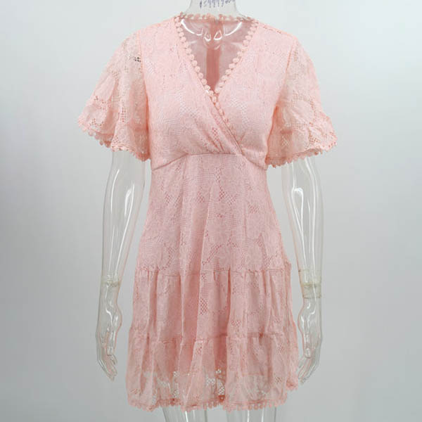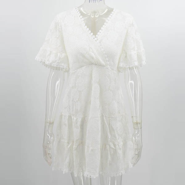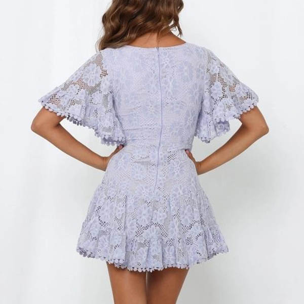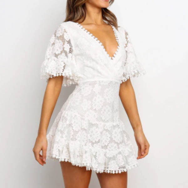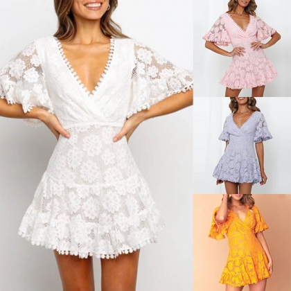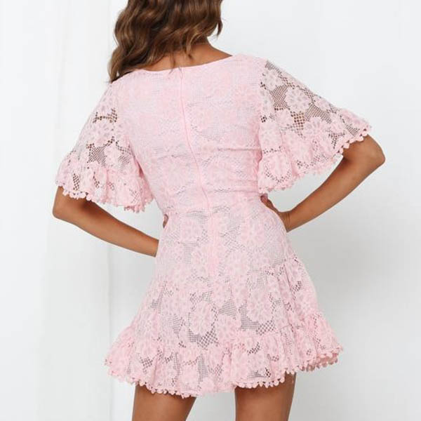 Sexy V-neck Trumpet Sleeve Slim Fit Lace Dress