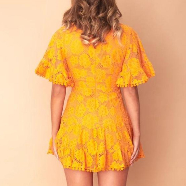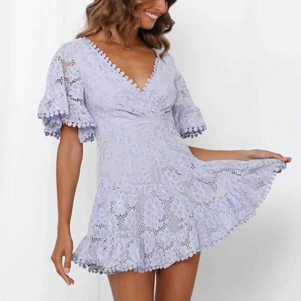 When in doubt,then make your eyes focused on this wonderful piece,you could hardly go wrong with this exquisite lace dress! The deep v-neck and trumpet sleeve design make this piece full of flirty and feminine vibes. For your night dating and weekend gatherings,you can trust in this dress to gain more eyes.