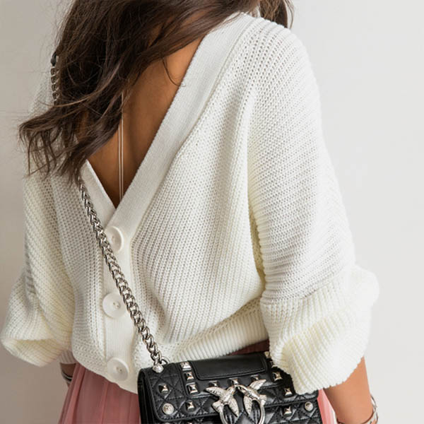 At your first sight,you may not find its sexy and chic design. So we suggest you have a second glance. It comes with a solid color,the v-shaped backless and back-button design make this piece look so distinctive,while the loose silhouette design can lend you a dash of casual vibes. If you like it,you can enrich your wardrobe with this piece.