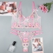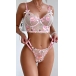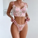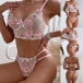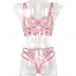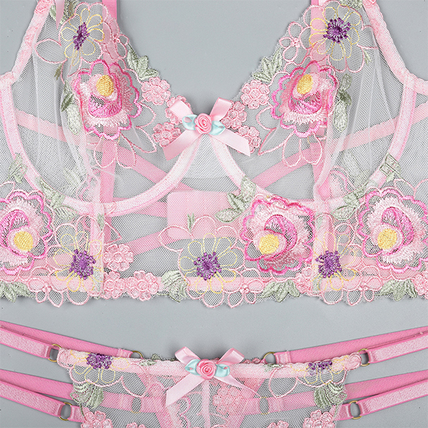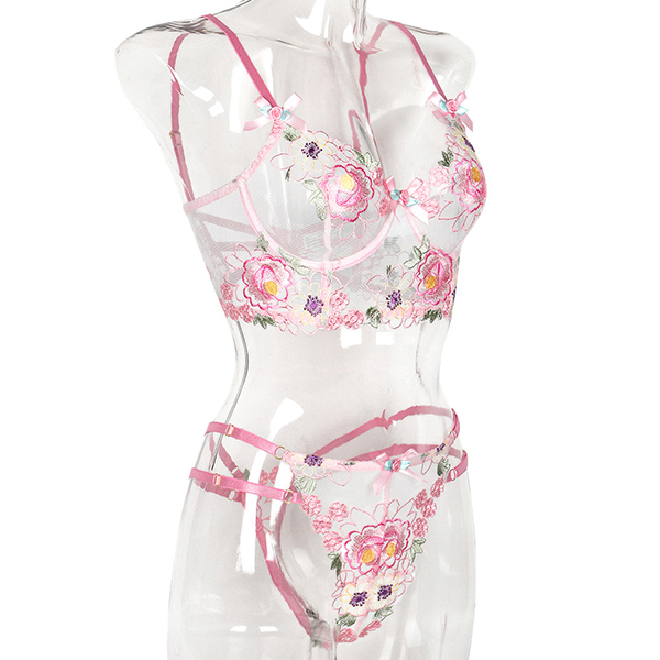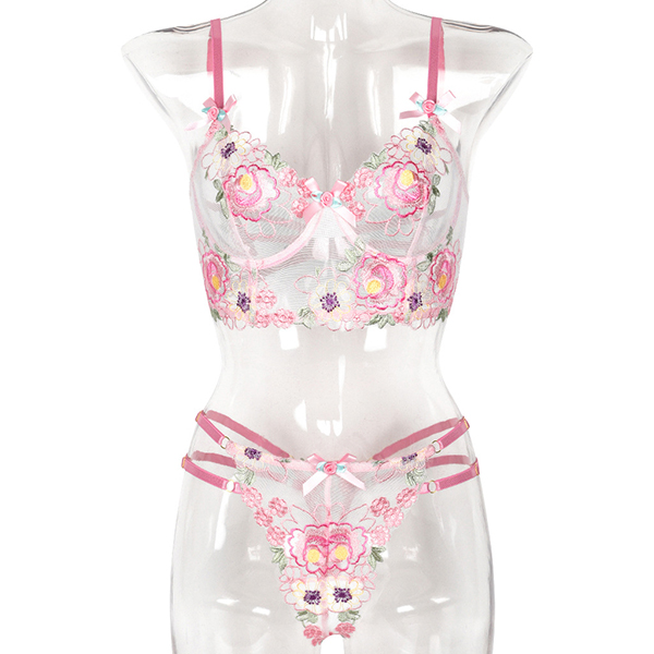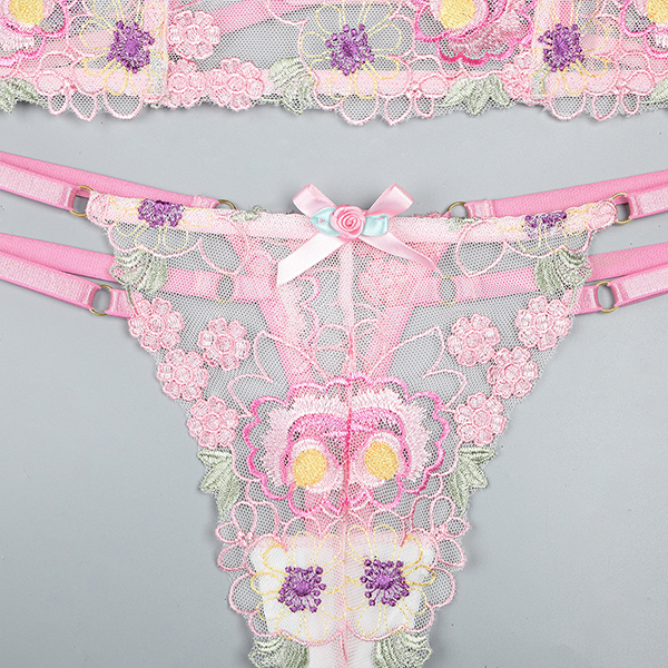 Sexy Vintage Floral Embroidery Pink Two-piece Lingerie Set