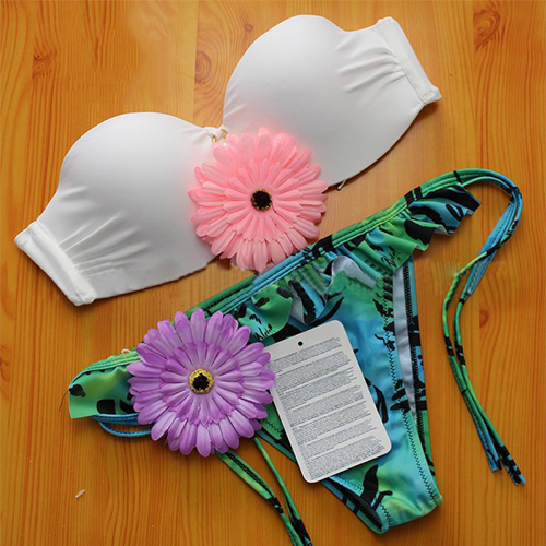 Absolutely you would be the most eye-catching bikini queen in this bikini set. Bandeau bra,
