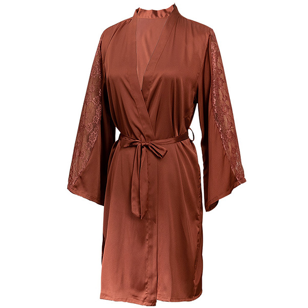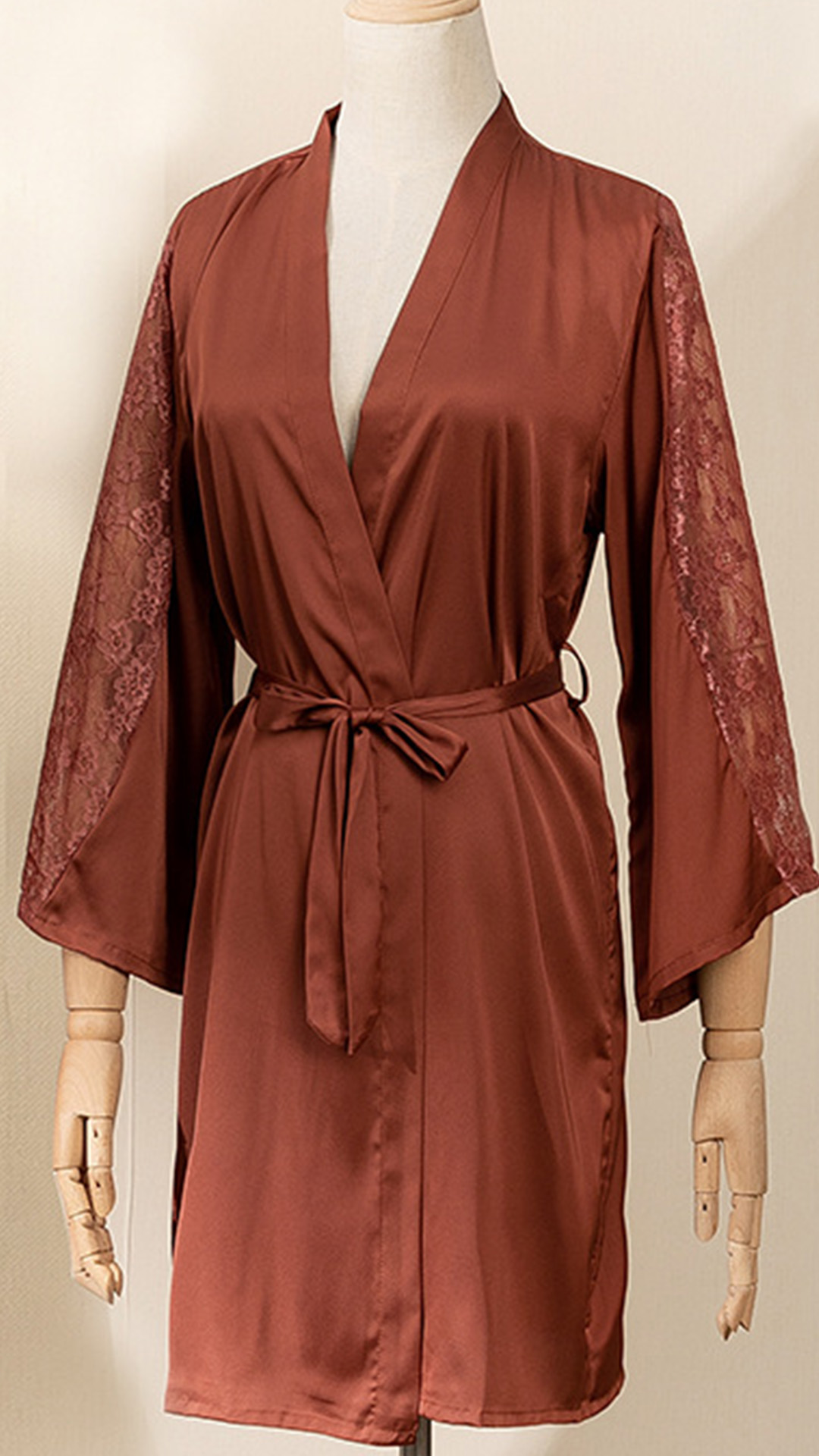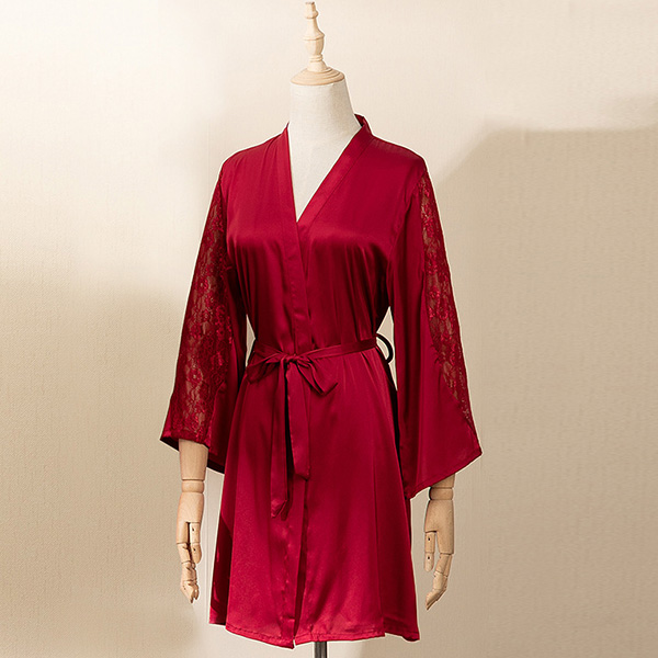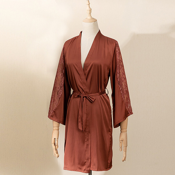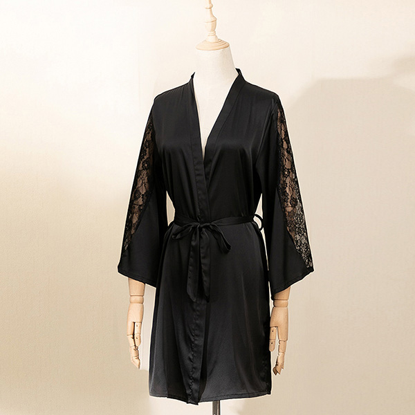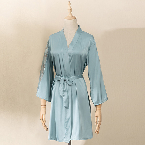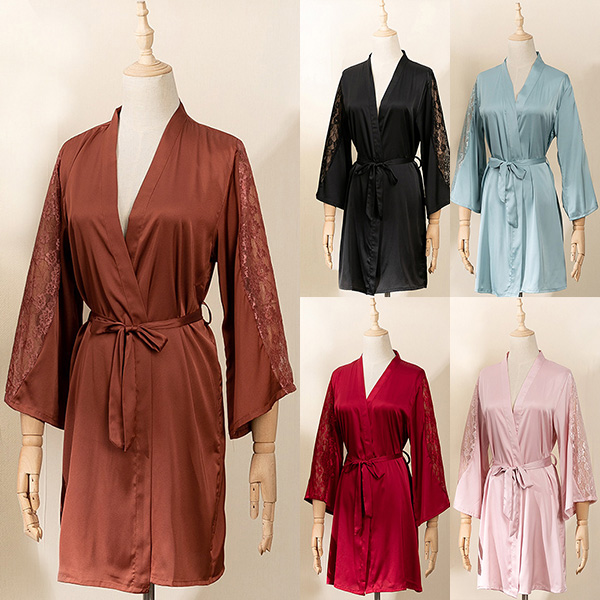 This robe is very convenient to wear when you get out of the shower. The fabric of this dress is very comfortable and easy to clean. The lace design on the sleeves and the solid color are very simple and elegant. You can wear it to do anything like watch TV, work at home and so on. If you don't have robe like this ,why don't you buy one?