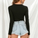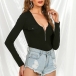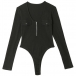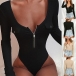 One of the best ways to flaunt off your seductive curve is through a bodysuit! It is crafted in a solid color,with long sleeve,zipper v-neck and a tight silhouette,this piece can offer you a sassy and flirty look by teaming with your high waist bottoms.