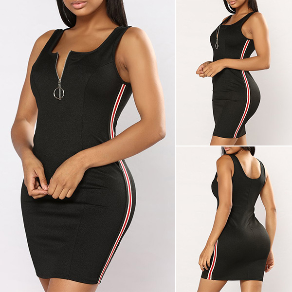 To make your summer wardrobe more complete,you can consider adding this sling top. The flattering black tone and fit silhouette design can better showcase your perfect body-line,while the zipper v-neck design will enhance your feminine appeal. So why not match with a shorts to achieve for a fashionable summer look?