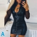 Crafted with high-quality artificial leather PU fabric, this dress offers a sleek and edgy look. Pair it with bold high heels or ankle boots for a fierce and confident look. It has 3 styles! Lace Spliced, front zipper and front cutout design, which one do you like?