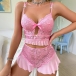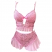 Fashion Lace Ruffle Hemline Two-piece Pink Lingerie Set