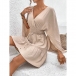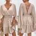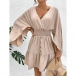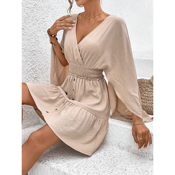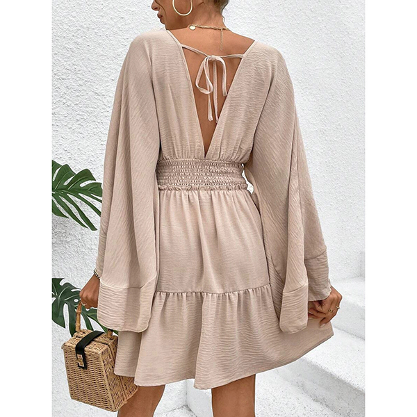 Fashion Solid Color V-neck Backless Smocked Waist Mini Dress