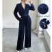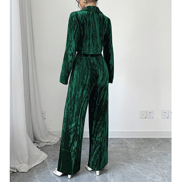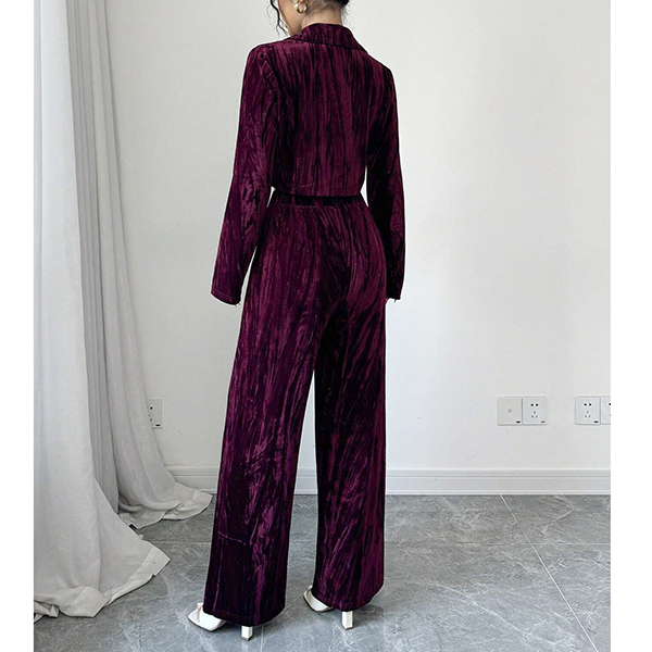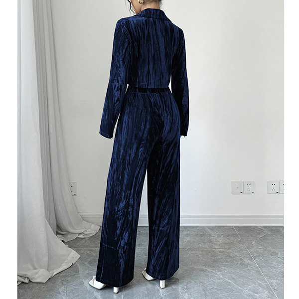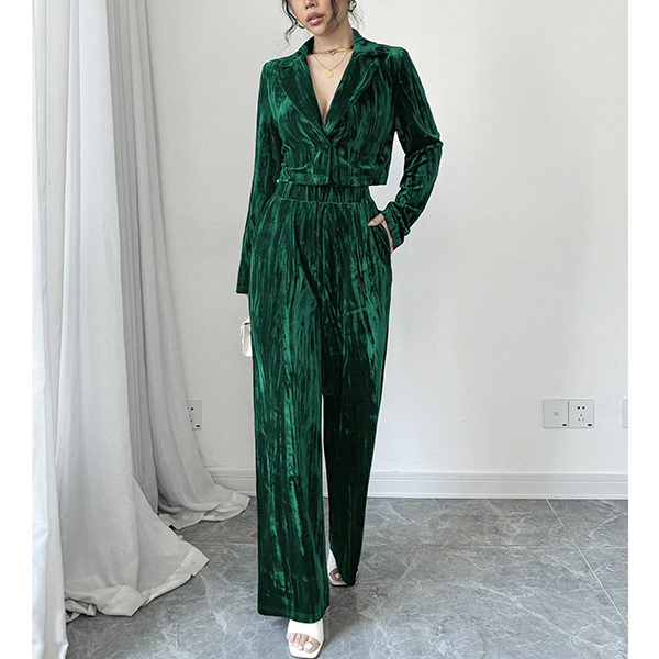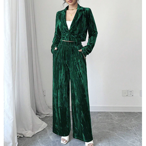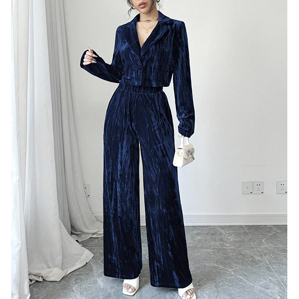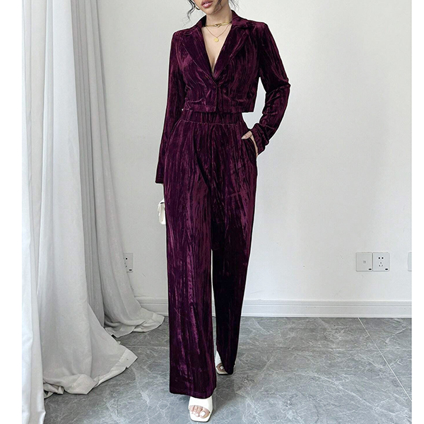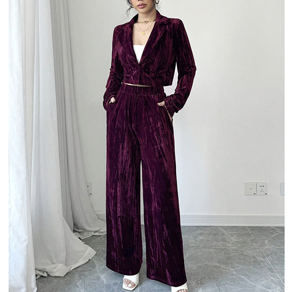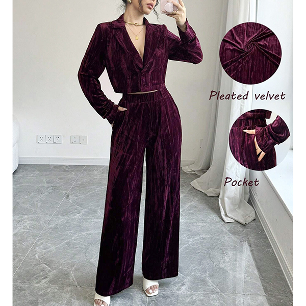 Short Jacket and Wide-Leg Pants Suit in Pleated Flannel