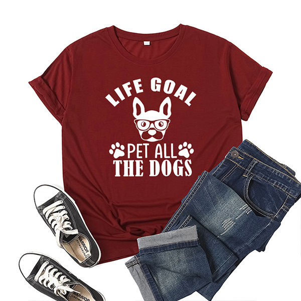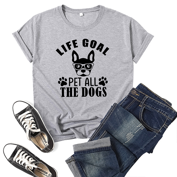 Short Sleeve Printed T-Shirt: "Life Goal: Pet All The Dogs"