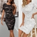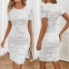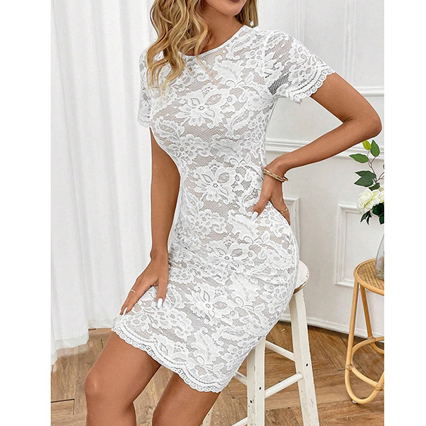 Short Sleeve Round Neck Dress with Elegant Lace Details