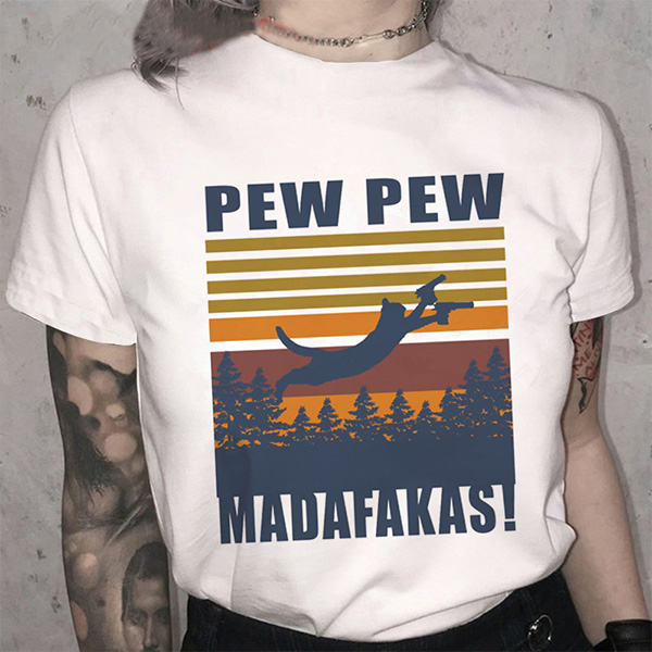 Short Sleeve T-Shirt with Funny Flying Black Cat Print