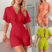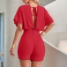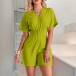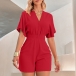 Short-Sleeve V-Neck Jumpsuit in Solid and Printed Styles