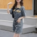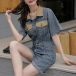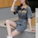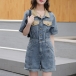 Shorts Style Denim Summer Jumpsuit with Contrast Stitching Short Sleeve