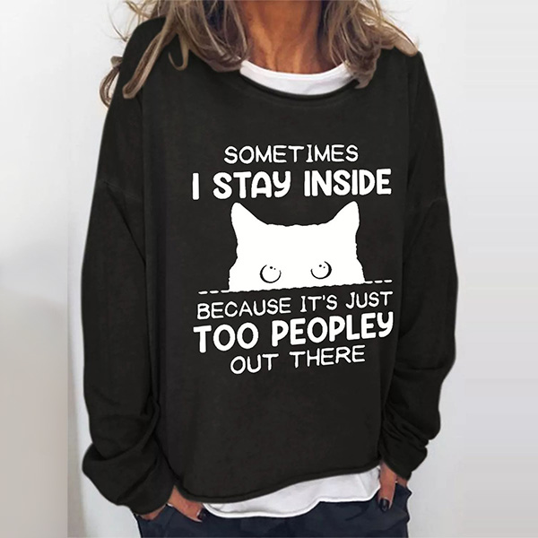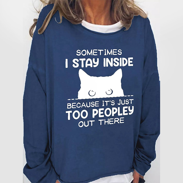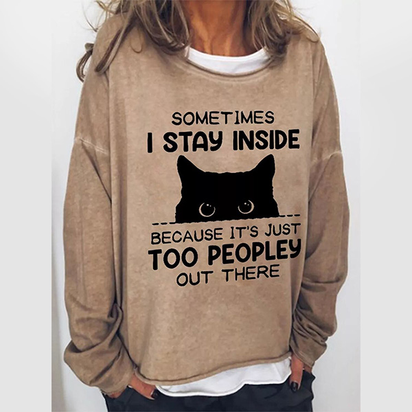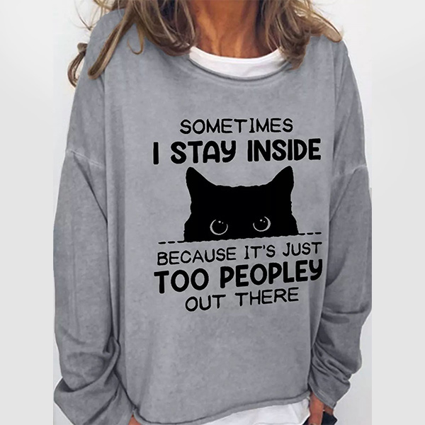 Shy Cat Design Loose Casual Round Neck Long Sleeve Pullover