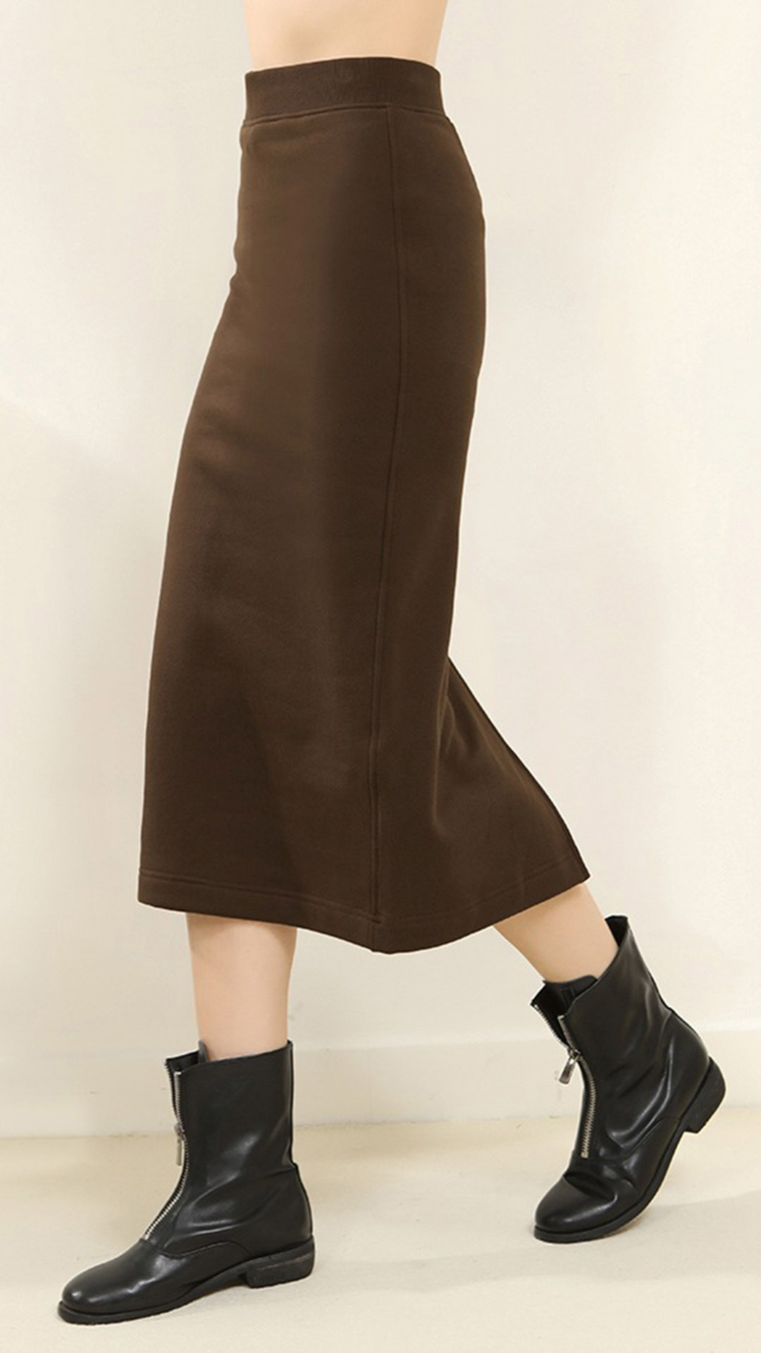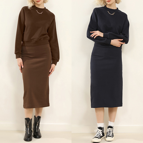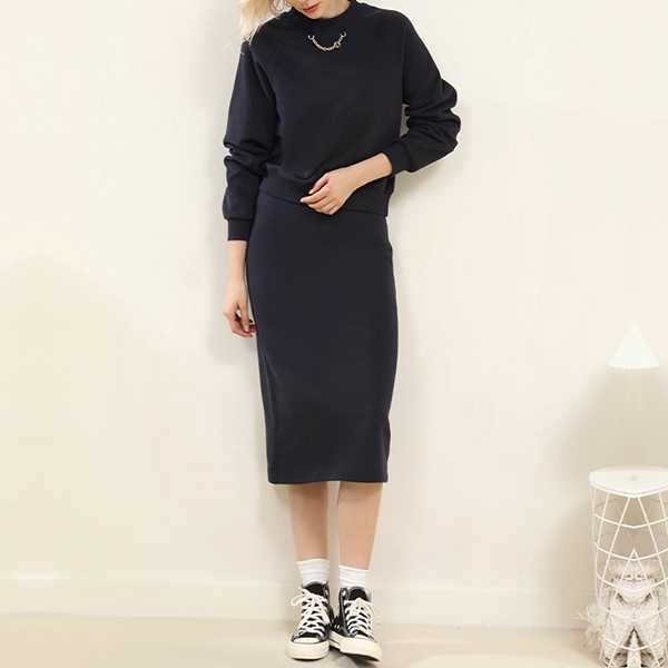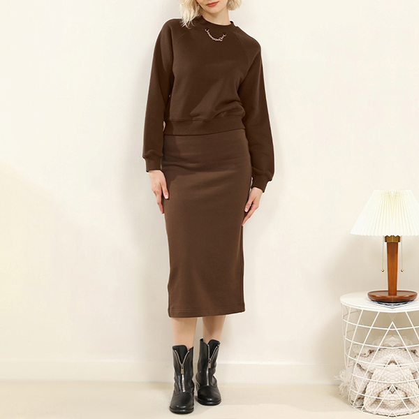 Embrace minimalism with this simple and elegant two-piece set. It consisting of a round neck shirt and a slit skirt. This set is designed for those who appreciate clean lines and understated sophistication in their fashion choices.