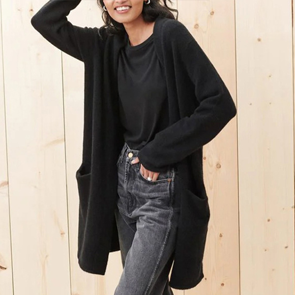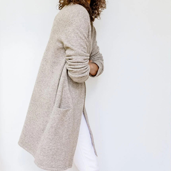 Simple Minimalist Solid Color Long Sleeve Knitted Cardigan