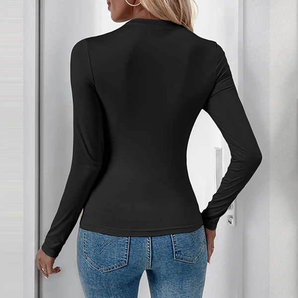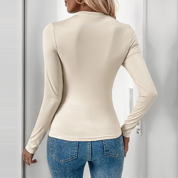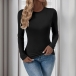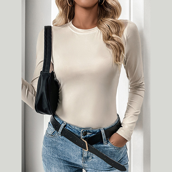 Simple Solid Color Crew Neck Long Sleeve Basic Shirt-2 Piece/Set
